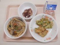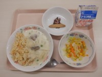 6/3の献立は、カレーライス、ツナチーズサラダ、オレンジかんてん、牛乳です。