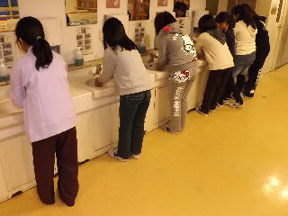 今日は宿泊客が多かったため,浴室も食堂も,実際に入れたのは18:00頃でした。食事の前には,しっかり手洗い,殺菌をしました。