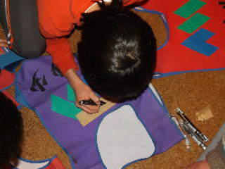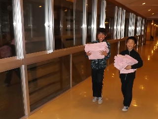 夕食の後,美化係は,シーツと枕カバーを取りに行きました。それぞれの部屋では,明日の「スキー教室」で使うゼッケンに名札をつけました。