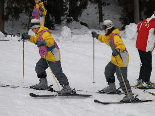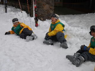 転んだときの起き上がり方も教わりました。スキー板を“ハ”の字の形は,インストラクターの先生が,手取り足取り教えてくださいました。