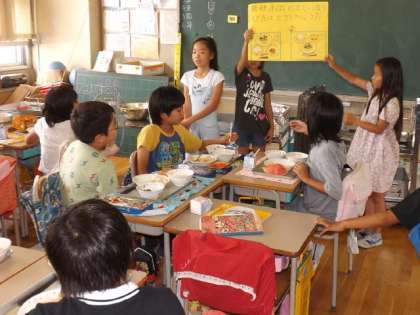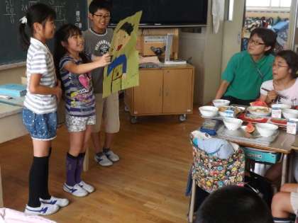 給食委員会では,今日から3週間,月曜日と火曜日に「食育クイズ」を行います。“初めて”の5年生は,緊張したようでした。しかし,みんなが楽しそうに答えてくれたため,笑顔で教室を後にしていました。