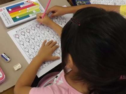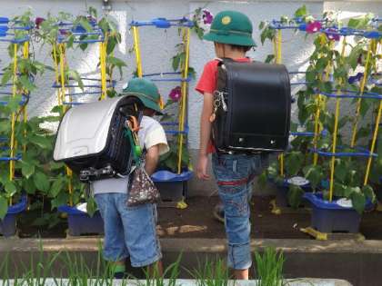 1年生のアサガオ,毎日,たくさんの花をつけています。教室では,「観察カード」に,その数を記録しています。