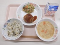 ビビンバ アーモンドこふきいも わかめスープ バナナ 牛乳