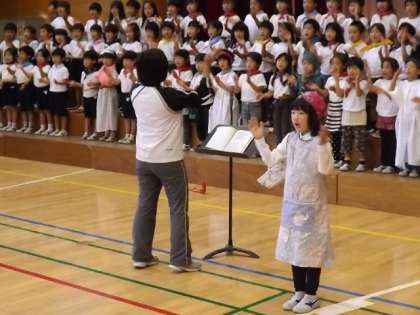 10月31日(木)〜11月2日(土)は,音楽会です。全校朝会で,校長先生が「笑顔で歌うといい」と,範唱し,アドバイスしました。各学年の練習では,早速,それが生かされていました。
