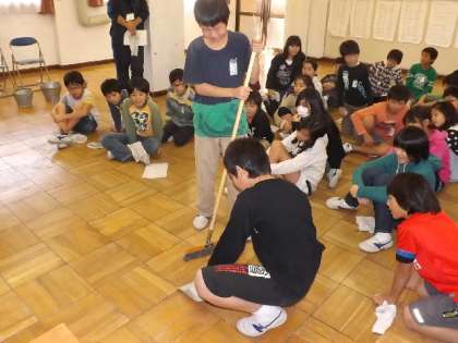 5年生で,「ダスキン・キレイのタネまき教室」が行われました。なぜ,そうじをしなくてはいけないかや,ほうきやちりとりの正しい使い方を教えていただきました。