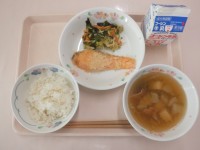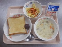 給食・2月28日(金) 公開日 2014/03/03 更新日 2014/03/03 給 食 スパゲッティチキンソース 野菜スープ 130周年お祝いケーキ ※3月1日は篠崎小学校の130回目の開校記念日です。代表委員会で考えたお祝いのケーキです。 給食