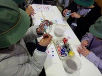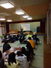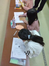 観光協会の方に説明を受け、お米袋米体験をしました。米袋に絵をかいてから、袋の中に...