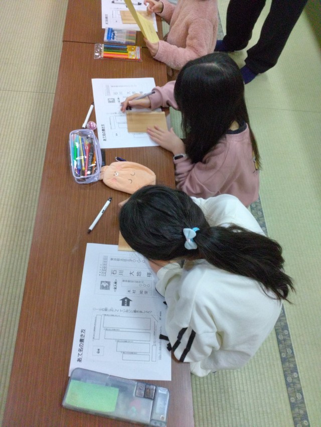 ウィンタースクールの思い出を手紙にしたためて、木のハガキに心を込めて書きました。