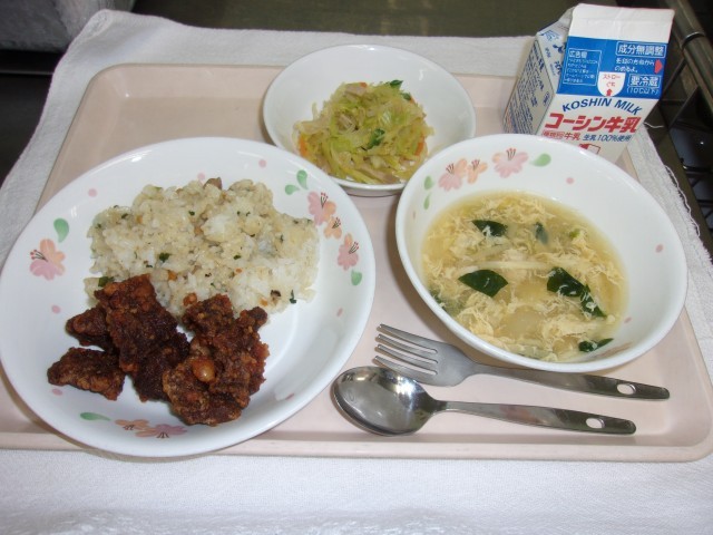 煮豚チャーハン レバーと大豆の変わり香味だれ 春雨サラダ 中華たまごスープ