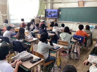 来週から始まる持久走練習に向けて、運動委員会による説明動画を各学級で視聴しました。