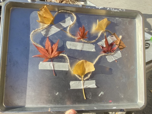 おぼんの上に、素敵な葉を並べて、自分のコレクションにしている子もいました。