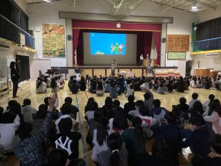 12月19日の児童集会はもうすぐクリスマスが近づき、サンタクロースということで3択クイズを行いました。