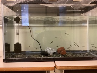 鮭の卵 公開日 2026/01/28 更新日 2026/01/28 できごと 昨年届いた鮭の卵ですが、順調に成長し、こんなに大きくなりました。まだまだ小さいですが、イクラから頭と尾が生えていた初期の頃と比べると随分と成長しました。 いいね(0) 全校