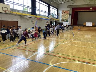 朝は、3年生がドッジボール、2年生が鬼ごっこ、1年生がロケット投げでした。