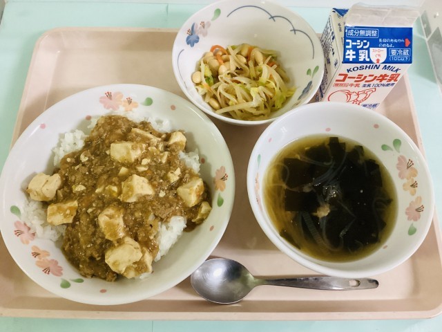 マーボー丼・大根サラダ・わかめスープ・牛乳