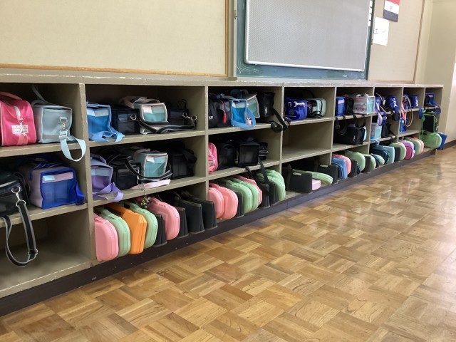 校内で1番人数が多い4年生。鍵盤ハーモニカや絵の具セットなどが教室に入りきらないため、鍵のかかる特別教室に置いているのですが、綺麗に置いていて、こちらもいいスタートが切れています。
