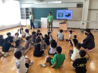 学年集会で相談をし、田んぼに網をかぶせることにしました。
