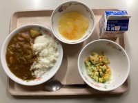 1年間お世話になった6年生を囲って、縦割り班で給食を食べました。