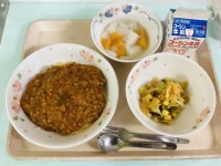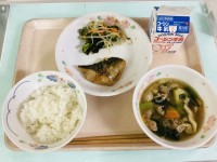 この日の献立は、茶飯おにぎり、みそおでん、じゃこピーナッツ、りんご、牛乳でした。