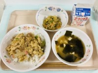 親子丼・ごまあえ・じゃがいものみそ汁・牛乳