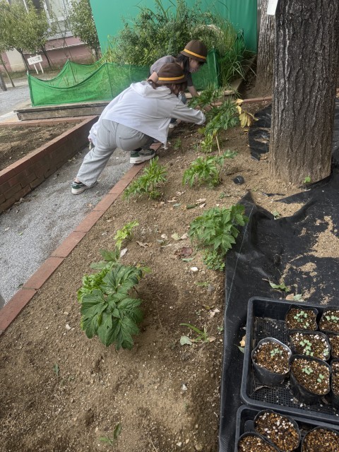 飼育・栽培委員会では、植物のお世話をはじめ、カメとヤギのお世話を担当して行っています。