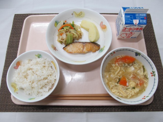 12月10日の給食 公開日 2025/12/12 更新日 2025/12/12 学校日記 〇ご飯〇牛乳〇銀だらの西京焼き〇キャベツとツナの和え物〇豆腐入りかきたま汁〇果物(りんご)普段はあまり給食で出さない「銀だら」でした。脂がのっていて身が柔らかく、魚が苦手な児童もよく食べていました◎