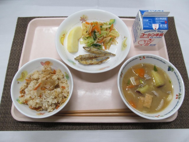かみかみ献立でした。れんこん、きびなご、ごぼう、りんごなど噛み応えのある食材を多く使用しました。