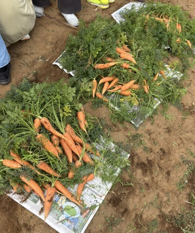 どきどきしながら、土を優しく掘っていくと、見事な「にんじん」をたくさん収穫することができました。