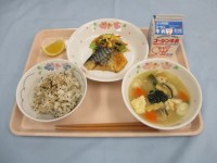 ・ごまゴマご飯・さばの香味焼き・千草あえ・豆腐のすり流し汁・日向夏・牛乳
