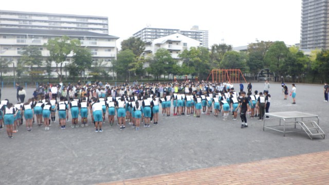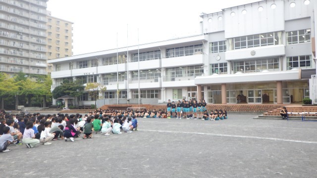 明日に迫った6年生の体育大会に向けて、全校で応援集会が開かれました。これまで5年生を中心に応援の練習を重ねてきた成果を発揮し、全校で心のこもったエールを送りました。