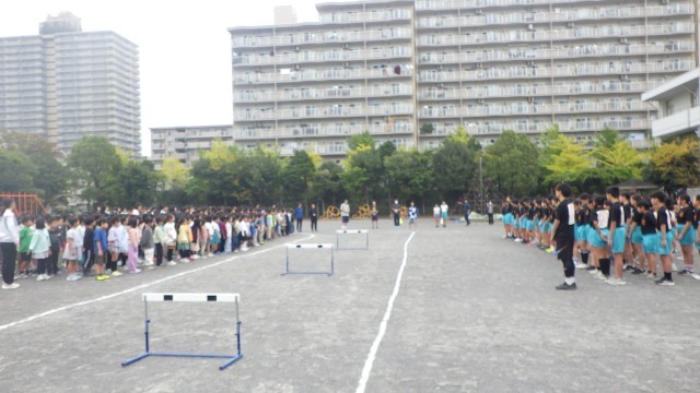 集会では、6年生が高跳び・幅跳び・ハードル走・1000m走・100m走・リレーなど、各種目のポイントを紹介しながら実演を行いました。真剣なまなざしで競技に取り組む6年生の姿に、下級生たちからは自然と歓声と拍手が沸き起こりました。
