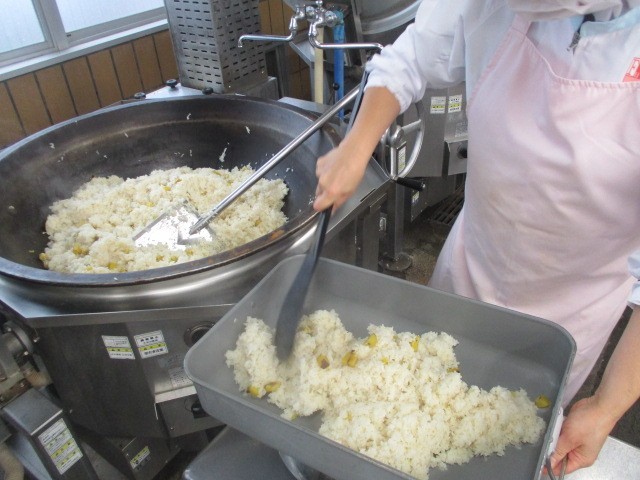 地球温暖化がささやかれていますが、食べ物の旬も少しづつ早くなっているようです。栗も10月中なら良いだろうと思っていたのですが、八百屋さんに「ちょっと遅いよ。」と言われてしまいました。それでもなんとか生栗を入手し、今日は栗ご飯です。収穫量が減り、価格が高騰している貴重な栗を、食べやすいようにほんのり甘く煮て、薄口しょうゆで味付けたご飯と混ぜました。みんなで秋を感じながら食べました。