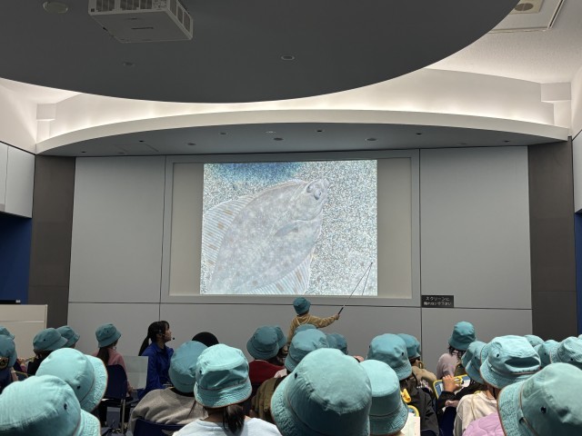 今回は、「さがせ!いろんな魚」という団体プログラムに参加し、水族館の方からお話を伺うことができました。それぞれの魚のかたちは、その魚の暮らしに合った、便利なかたちになっていると教えてもらうことができ、プログラム後には、魚のかたちやすみかに注目して水族館を回ることができました。