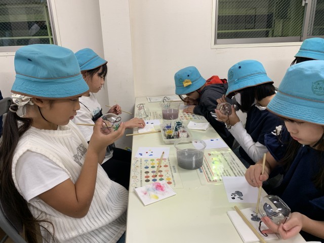 江戸風鈴を製造している工場では、江戸風鈴の絵付け体験を行いました。事前に考えたデザインを参考に一生懸命塗りました。
