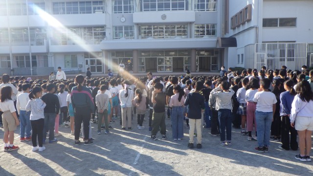 今朝の集会では、集会委員会によるハロウィンにちなんだ「くじ引きゲーム」を行いました。
