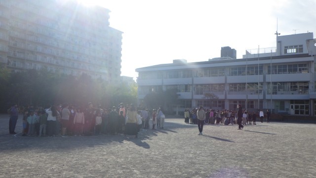 全校児童は、校庭に描かれた4つの絵(魔女・ゾンビ・黒猫・おばけ)の中から好きな場所を選んで移動します。その後、集会委員がくじを引き、くじの結果によって「脱落」や「復活」が決まります。