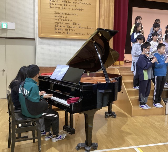 丁寧に響かせます。合唱「太陽と大地の子供たち」では、作曲者の「子供たちが太陽の恵を感じ取りながら、のびのびと