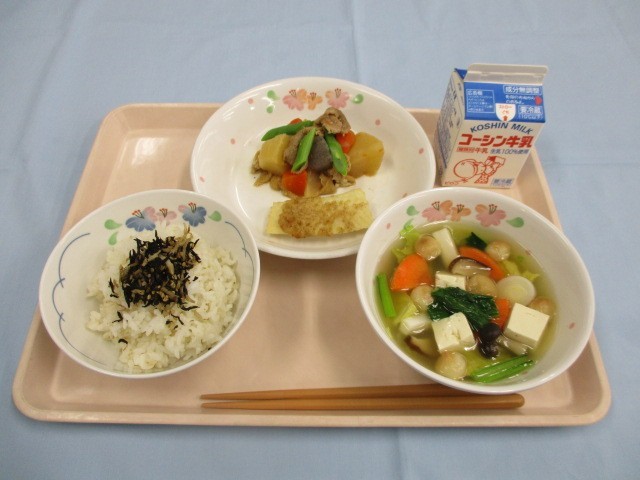 給食で使っているお米は姉妹都市である鶴岡産を使用していますが、いよいよ新米に切り替わりました。新米は新鮮で水分が多いので、炊飯するときの水分を少し減らして炊いています。お味はどうでしょうか?