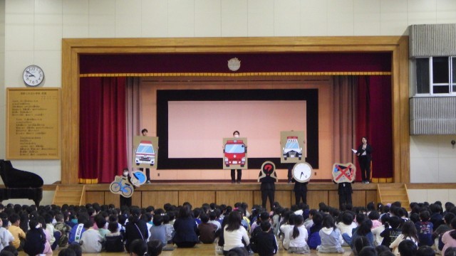 終業式の後には、生活指導の先生から冬休みの生活についてのお話がありました。「3つの車に気を付けよう」というテーマで、救急車・消防車・パトカーの絵を用いて、次の点が伝えられました。