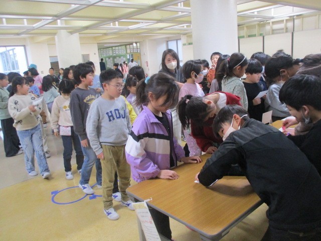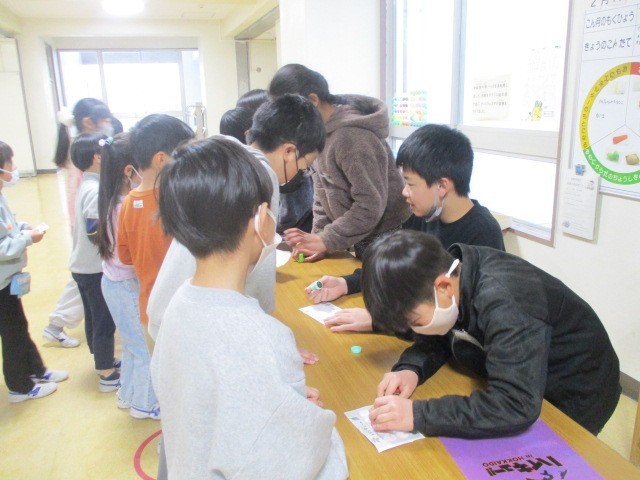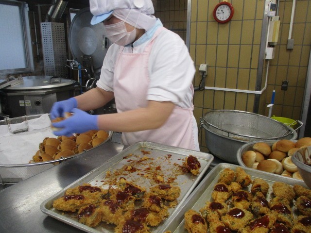 6年生男子が考えた献立でした。今までに食べた自分の好きな給食を、上手に組み合わせた献立でした。今週は給食委員会からスタンプカードが配られ、盛り付けられた自分の給食を残さず食べるとひとつ、更におかわりをするともうひとつスタンプを押してもらえる、という取り組みが行われています。ひと口でもおかわりをしてスタンプを2個ゲットしようと頑張る子がいたり、食べ途中でおかわりして残してしまう心配からおかわりを自粛したり、自分の食べられる量を知る、良いきっかけになったようです。今までおかわりができなかった少食気味の子は、取り組みが終わったあとも、ひとくちのおかわりが続けられたら良いですね。