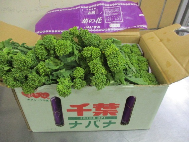 清新臨海地区の共通献立で、千葉県の郷土料理でした。清新臨海地区の小学校、中学校合わせて5校で同じ給食を食べました。千葉県の房総半島周辺では昔からアジやイワシなどがよく獲れていたそうです。漁師たちは船の上で味噌と一緒に魚をたたき「なめろう」という料理を作って食べました。生のなめろうを焼いたものを「さんが焼き」と言います。菜の花を植えることで収穫が終わった後の田んぼが荒れるのを防ぎ、また観光振興の意味もあり、千葉県では菜の花の栽培に力を入れているようです。千葉県から届いた菜の花やいちごからは、春の風を感じました。