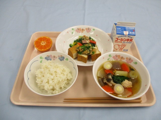厚揚げをオーブンでカリッと焼き、肉味噌をかけました。温州みかんは今シーズン最後となり、これからは数多くの国産オレンジが旬を迎えます。季節はゆっくりと移り変わっていきます。