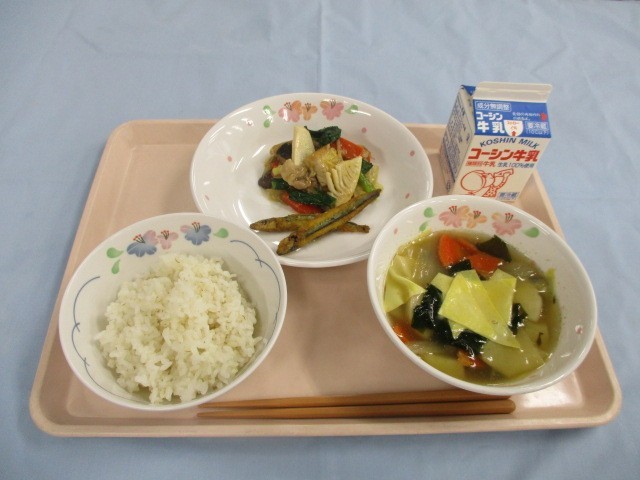 ししゃもやわかさぎなどの小魚の中でも、小さくて食べやすいきびなごは残菜も少ないです。今日はカレー味なのできっと人気だったことでしょう。骨ごと食べる小魚は成長期には欠かせない食材です。時々、小魚の身の部分だけ食べ、骨をきれいに残す子に出会い、思わず苦笑してしまうこともあります。そんな時は、箸使いが上手なことを褒め、骨も食べられることを説明して次回はチャレンジすることを、約束してもらいます。