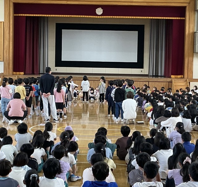 2~6年生の児童が1年生を拍手で迎え、会が始まりました。