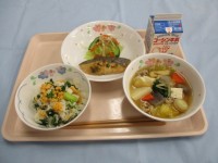 新しい年が始まりました。3学期最初の給食は、食べやすいクリームライスにサラダとフルーツポンチでした。ポンチには缶詰のフルーツに旬の生のりんごを加え、彩りと食感を良く仕上げてあります。久しぶりの給食に子供も大人もニコニコでした。