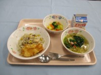 大きな三枚おろしの紅鮭の切り身を焼いてほぐし、炒り卵や野菜と一緒にチャーハンの具にしました。鮭の赤い色とたまごの黄色、にらの緑が鮮やかに、見た目にもおいしく仕上がりました。