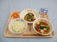 3年生がグリンピースの鞘むきのお手伝いをしてくれました。むき始める前に、鞘に入った豆の種類や豆が鞘の中でどんなふうに付いているか考えました。目で見て、手で触り、匂いを確認したり、タブレットで写真を撮ったりして観察カードを書きました。むきたての豆は香りも味も新鮮で、まさに旬の味でした。グリンピースが苦手な子も、今日ばかりは頑張りました。