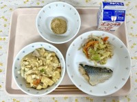 今日のメニュー卵とじうどんサバのつけ焼き春キャベツのおかか和え小松菜だんご牛乳 ...