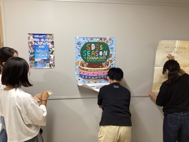 広報委員会は、日々届くポスターを貼り替える仕事をしています。