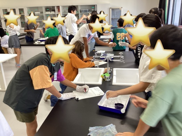 6年生は理科の学習で、水溶液に溶けているものについて調べました。見た目やにおい、熱したときの変化をもとに、水溶液の性質を考察しました。アンモニアのにおいを感じて驚く姿も見られ、実験を通して、科学の不思議さに興味をもつことができました。